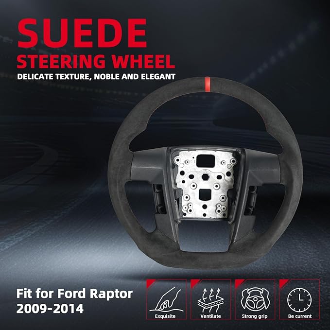HANDCRAFTED FLAT-BOTTOM SUEDE Steering Wheel for Ford F150 2009-2014