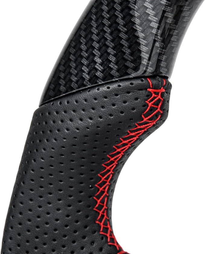 Our Hydro Dip Carbon Fiber Steering Wheel process replicates the high-gloss texture, instantly elevating your vehicle interior aesthetics. The side grips are wrapped in breathable perforated Nappa leather, paired with precision red hand-stitching—soft to the touch, quickly wicks away sweat, and eliminates stuffy hands in summer.