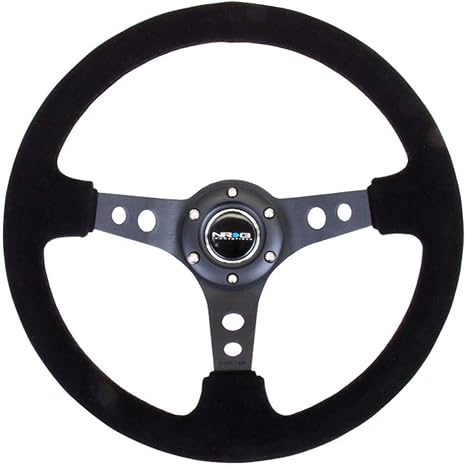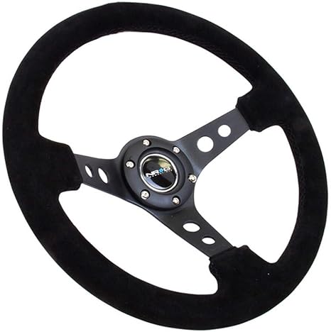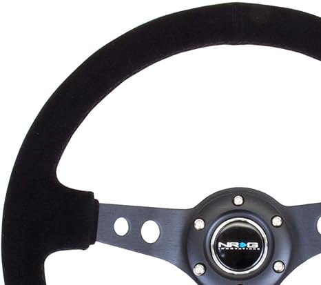 NRG Innovations NRG-RST-006-S Reinforced Steering Wheel 350mm Sport Steering Wheel (3″ Deep), Black Spoke Suede Black Stitch