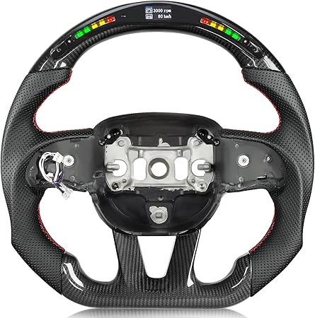 【20 LED Bulbs】 Upgraded steering wheel for Dodge vehicles with LED functionality! The high-quality display shows your speed and fuel level, and you can easily set it to match your country. The LED light strip changes with your speed, adding a cool and dynamic touch to your driving experience.